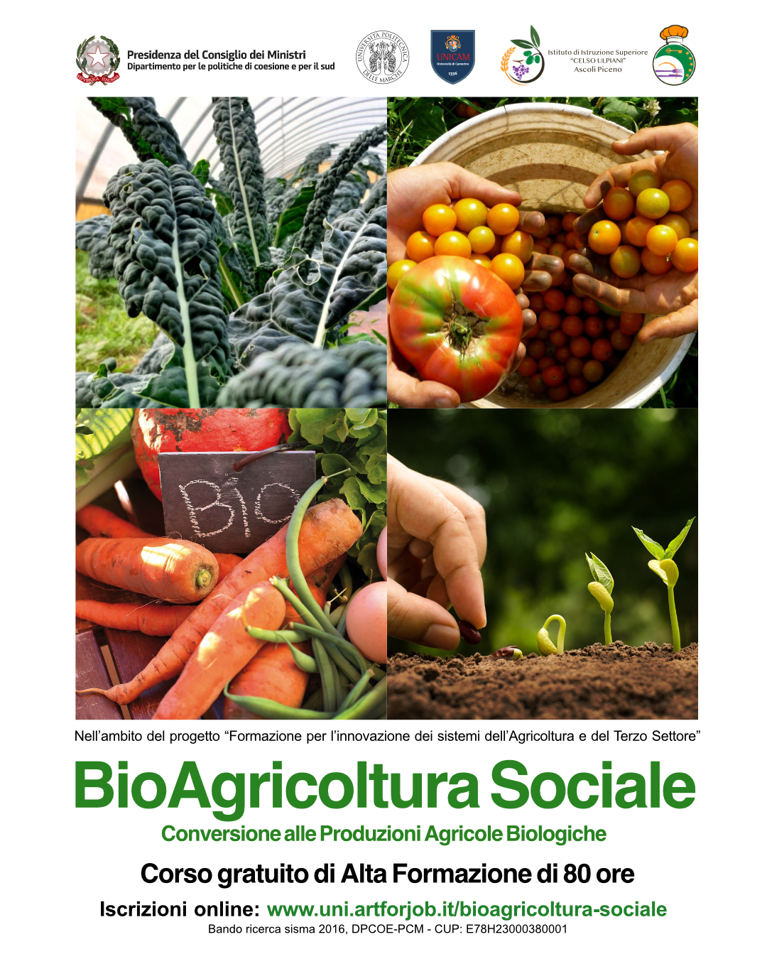 Progetto “Formazione per l’innovazione dei sistemi dell’Agricoltura e del Terzo Settore”, finanziato dal Dipartimento per le politiche di coesione e per il sud, Presidenza del Consiglio dei Ministri, Bando ricerca sisma 2016, codice CUP E78H23000380001